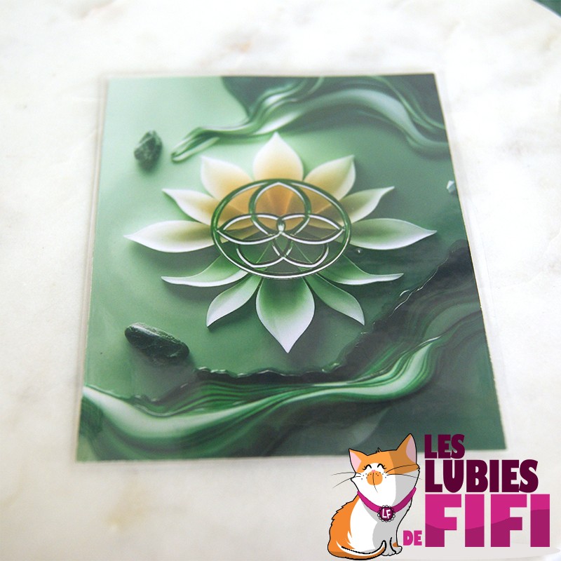 Illustration originale lotus & géométrie sacrée, finition plastifiée.